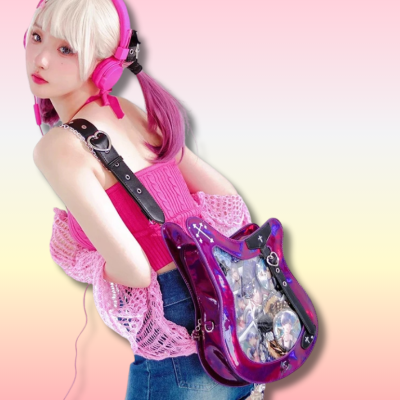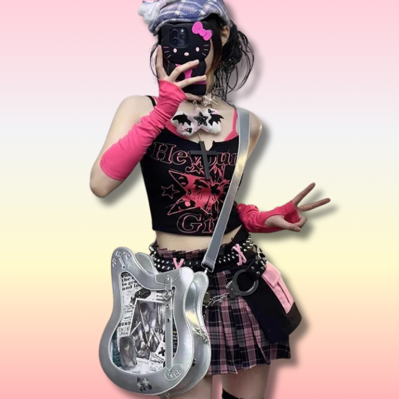 Affirmez votre look avec ce sac bandoulière ita Y2K, conçu pour attirer tous les regards grâce à sa silhouette originale inspirée d’une guitare basse. Son intérieur spacieux et sa bandoulière pratique gardent vos essentiels en sécurité tout en vous offrant un confort mains libres au quotidien. Parfait pour les amoureux de musique et les passionnés de mode, ce sac allie créativité ludique et vibes Y2K audacieuses pour un accessoire incontournable que vous adorerez porter.