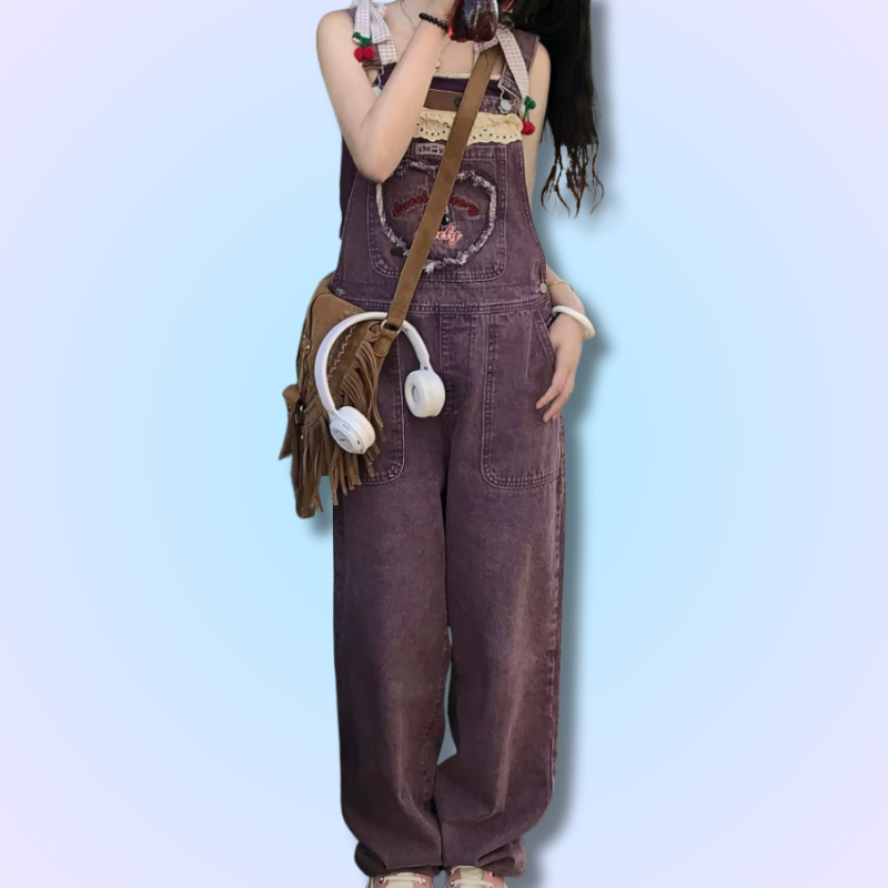 Salopette à Broderies Kawaii