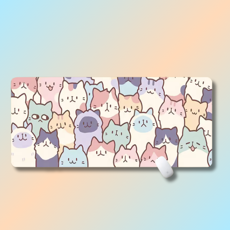 Upgrade your desk with this kawaii large mouse pad, combining adorable Japanese-inspired cat art with functionality. Its oversized design provides ample space for both keyboard and mouse, while the smooth surface ensures precise control and the non-slip base keeps it secure.
