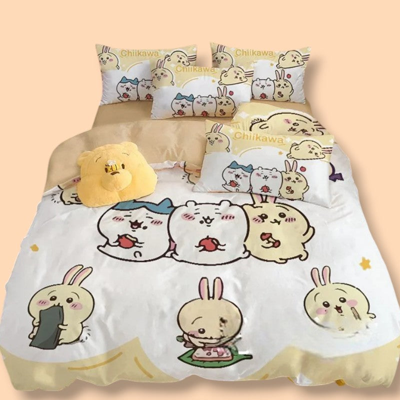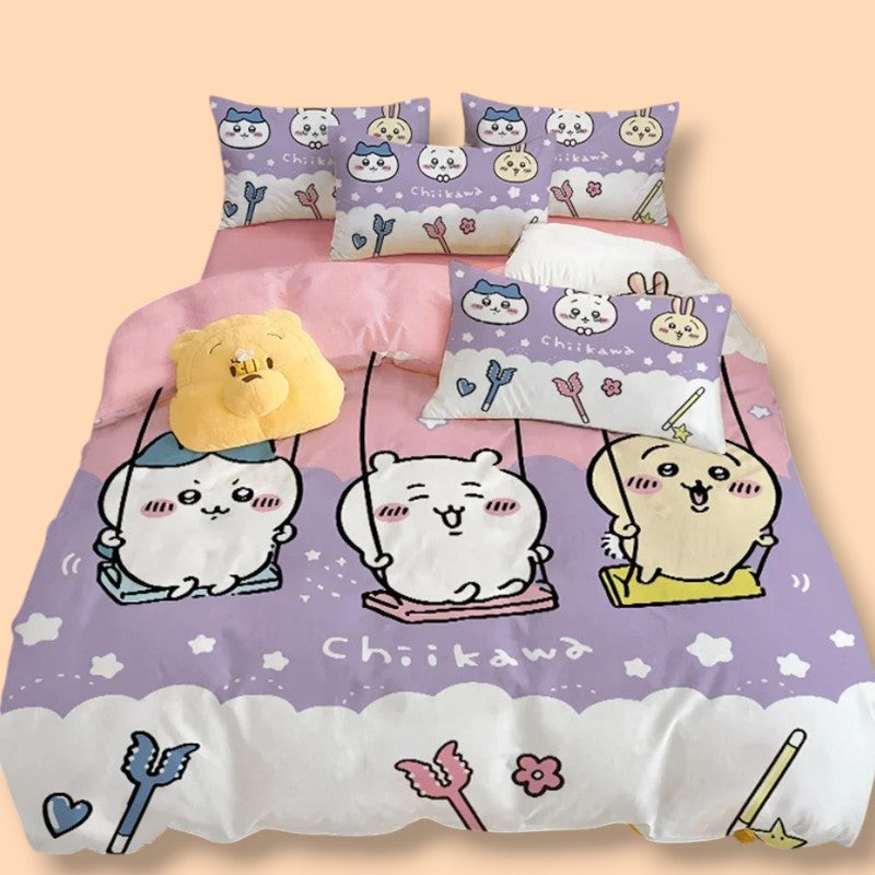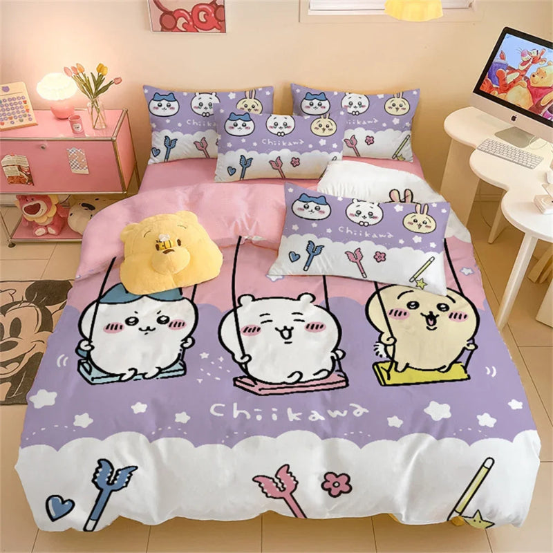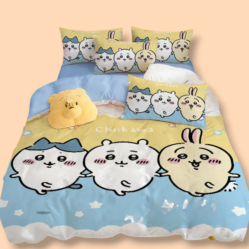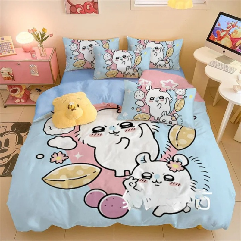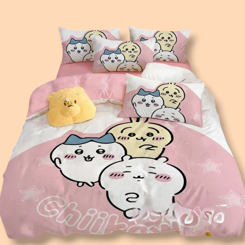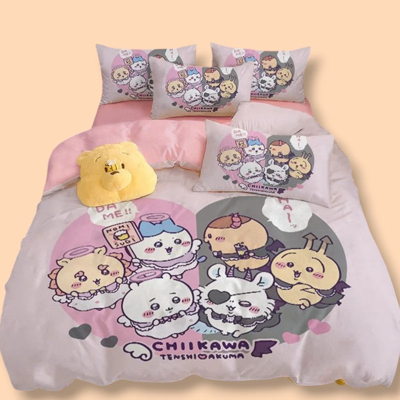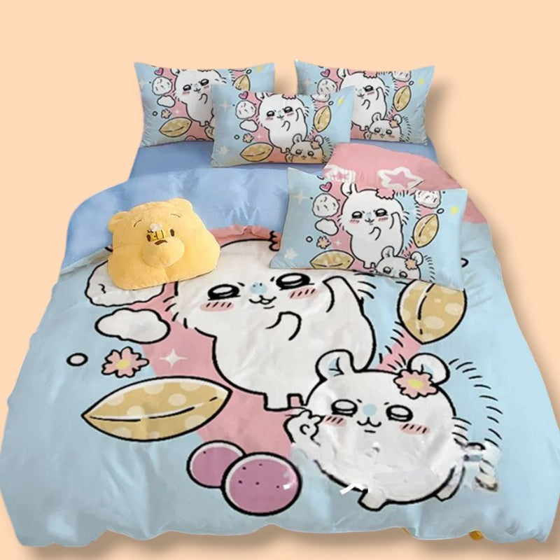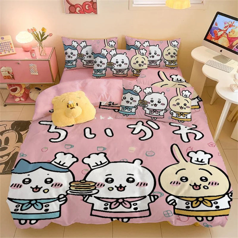 Bring a touch of adorable comfort to your bedroom with this kawaii anime bedding set