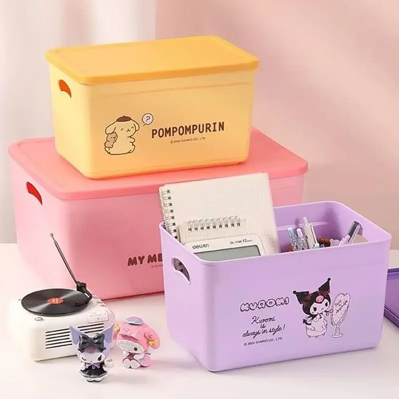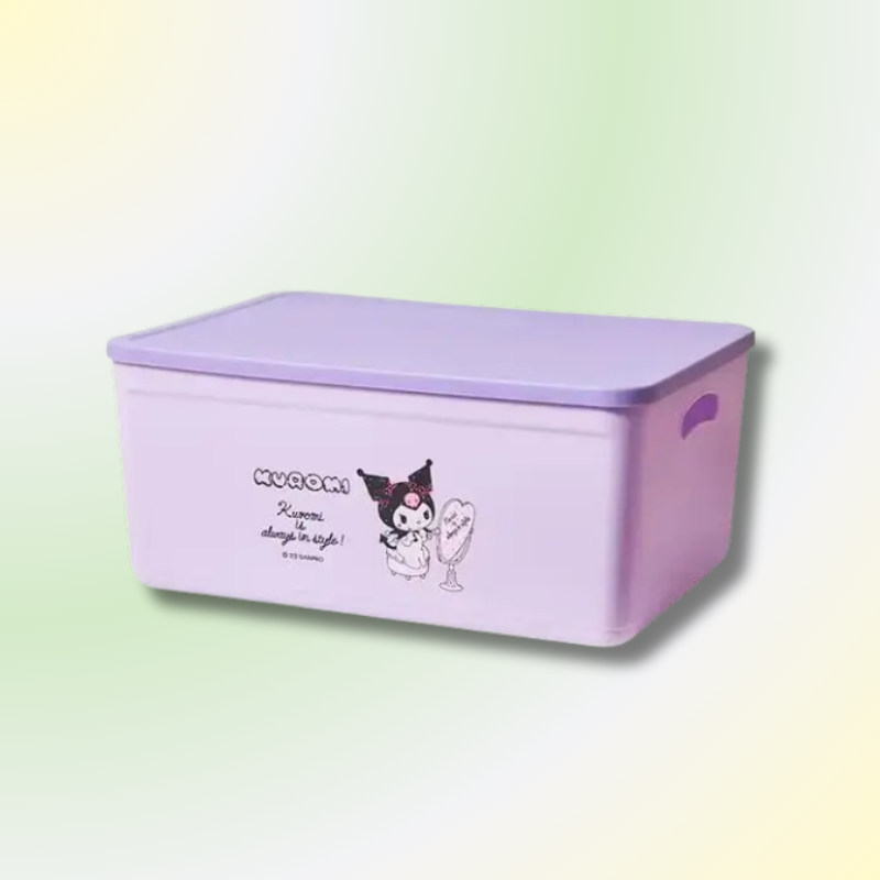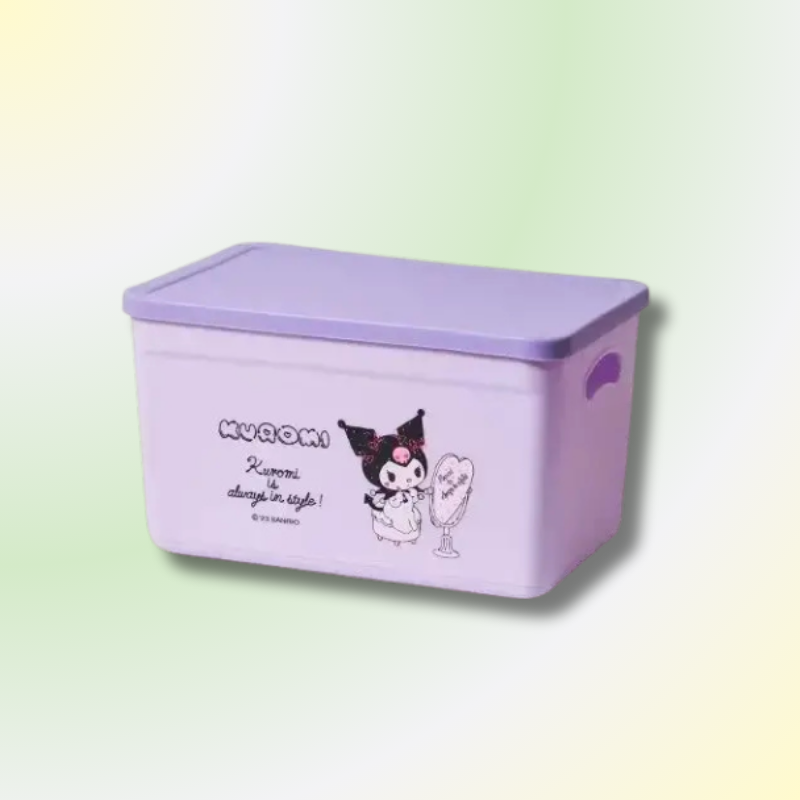 Keep your essentials organized with this storage box with lid, featuring cute Sanrio designs. Its large capacity makes it perfect for storing cosmetics, stationery, or household items, while the dustproof lid keeps everything clean and tidy. Ideal for dorms, bedrooms, or offices, this storage box combines practicality with adorable kawaii style.