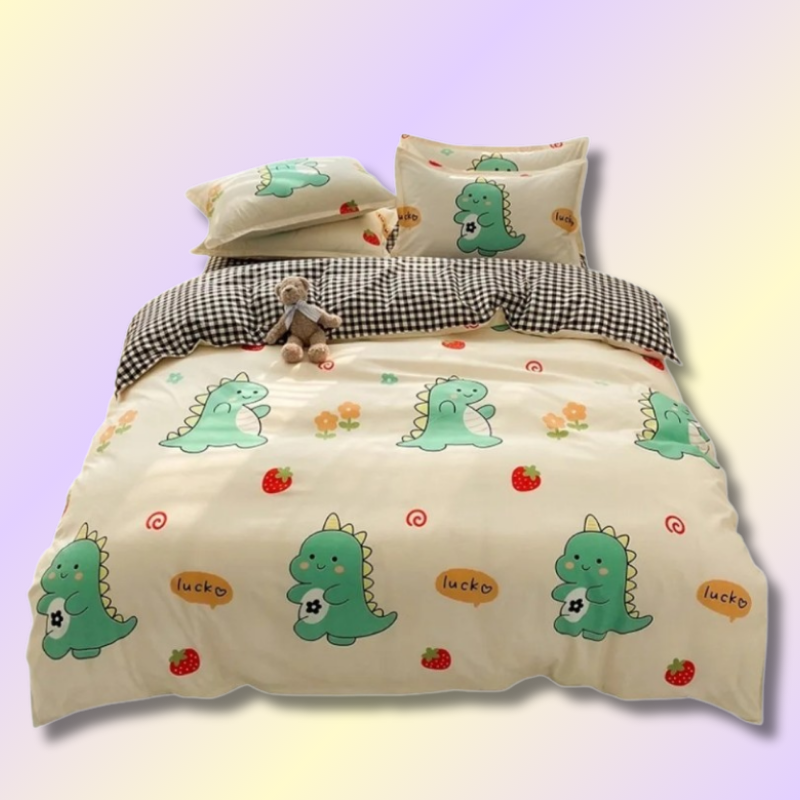 Bring fun and comfort to bedtime with this cute dino printed bedding set, designed for kids and teenagers who love playful style. Made from soft, skin-friendly fabric, this set ensures cozy and restful sleep while its cute dinosaur print adds a touch of joy and imagination to any bedroom decor.