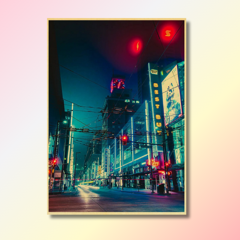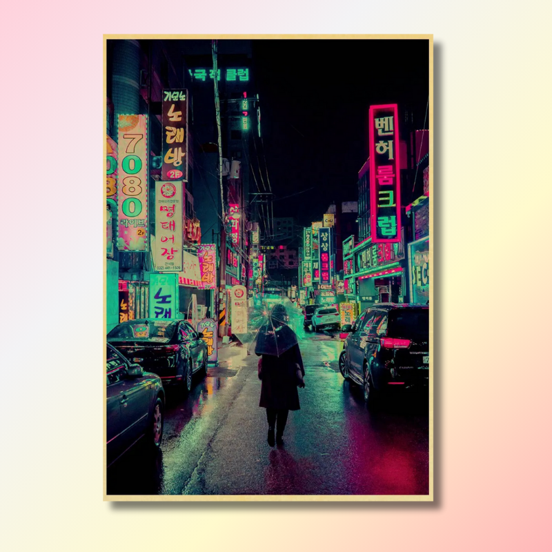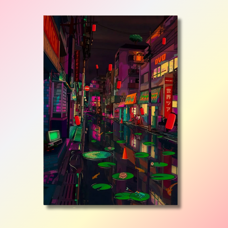 Transform your walls with this cute poster, featuring a stunning cyberpunk street design that adds vibrant energy and futuristic style to any room. Perfect for bedrooms, living rooms, cafes, or bars, this frameless wall art brings a modern aesthetic and bold neon colors to elevate your decor with an eye-catching statement piece.
